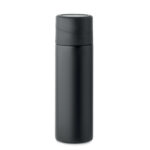 Taaskasutatud roostevabast terasest (90% taaskasutatud roostevabast terasest ja 10% roostevabast terasest) topeltseinaga vaakumisolatsioonipudel, silikoonist libisemiskindla telefonihoidiku rõnga kaanega. Lekkevaba. Mahutavus: 420 ml