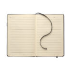 A5 notebook in hard cover made of 58% recycled polyester and 42% PU including integrated 16GB USB stick. Casebound. 160 lined recycled paper pages (80 sheets). Matching elastic closure strap and ribbon page-marker. FSC®-certified | FSC MIX CREDIT, P7.1, FSC-C213206