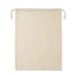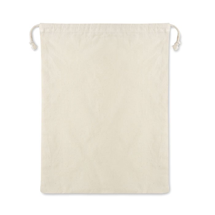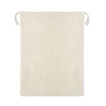 Re-usable food bag. One side is in cotton (140gr/m²) and other one is in mesh cotton (110gr/m²). Drawstring closure.