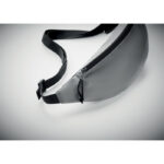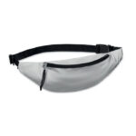 Waist bag with the front in high reflective polyester, with adjustable polyester strap.