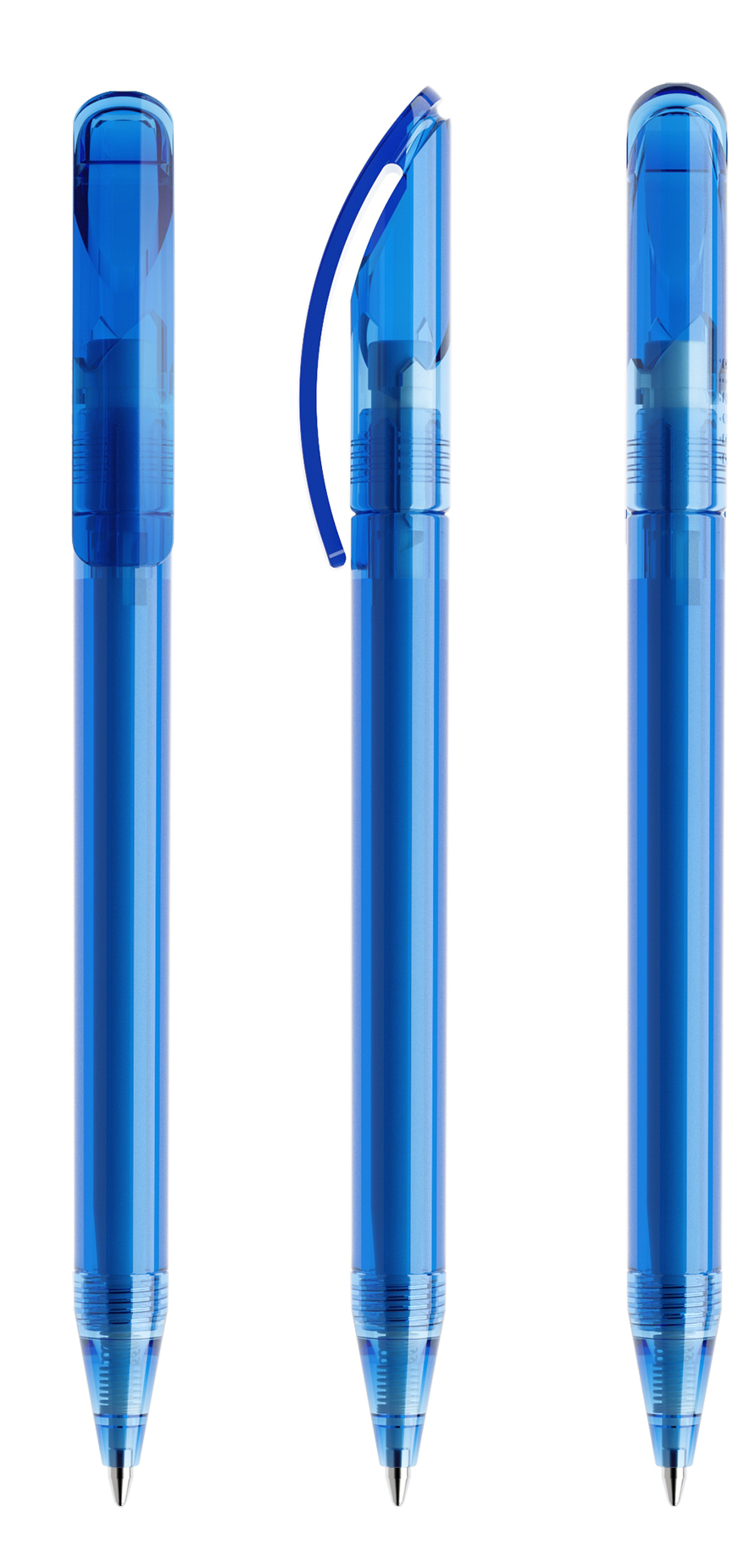 Saadaval on läbipaistvad, läikivad, matid variatsioonid ning ka metallotsikuga versioonid, kõik arutatakse individuaalselt. Sinine tint.