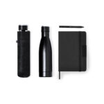 Stiilne premium-komplekt: termospudel, märkmik, vihmavari ja pastapliiats. Valmistatud keskkonnasõbralikest RPET-materjalidest. Pakendatud mati karbi sisse, võimalus lisada ettevõtte logo – praktiline ja elegantne reklaamkingitus