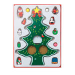 Kokkupandav puidust jõulupuu 12 erineva ripatsiga. Pakitud kinkekarpi läbipaistva kaanega