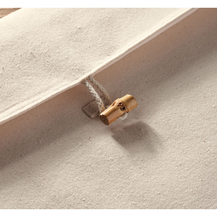 15-tolline polsterdatud sülearvutikott 220 gr/m² puuvillast. Sisevooder 120 gr/m². Bambusest nööbiga kinnis