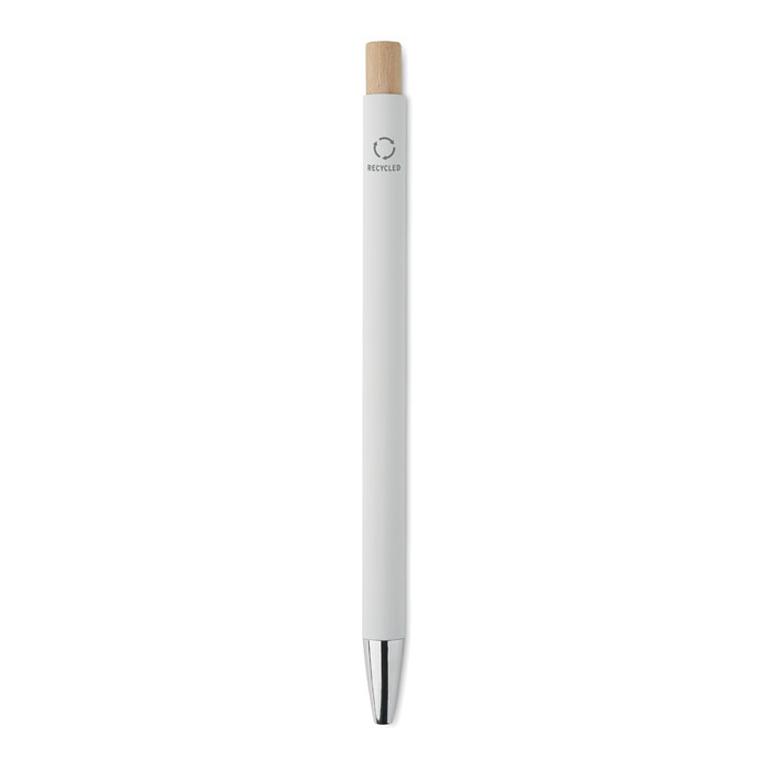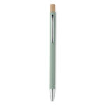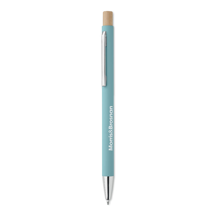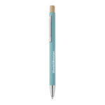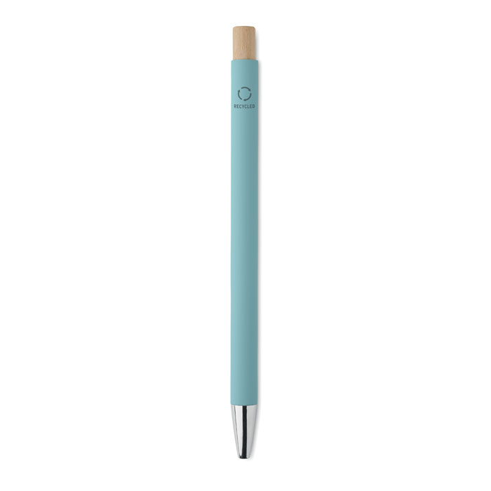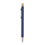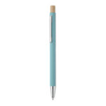 Taaskasutatud alumiiniumist kuulpliiats. Hõbedane ots ja klamber. Sinine tint